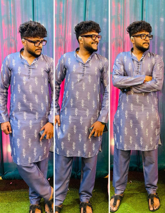 IVORY ROSE PRINTED KURTA PAJAMA SET FOR MEN'S