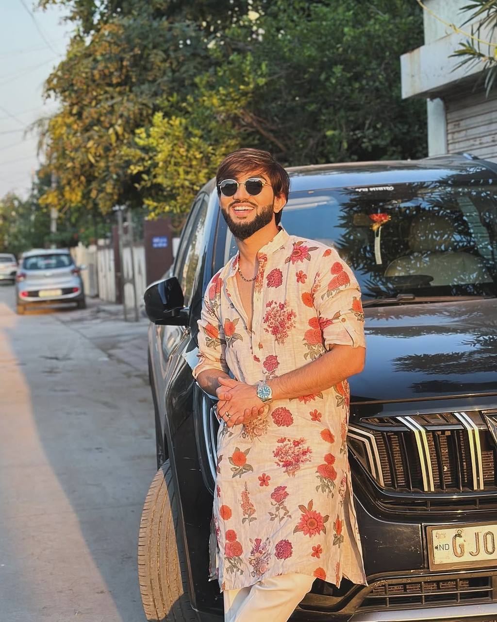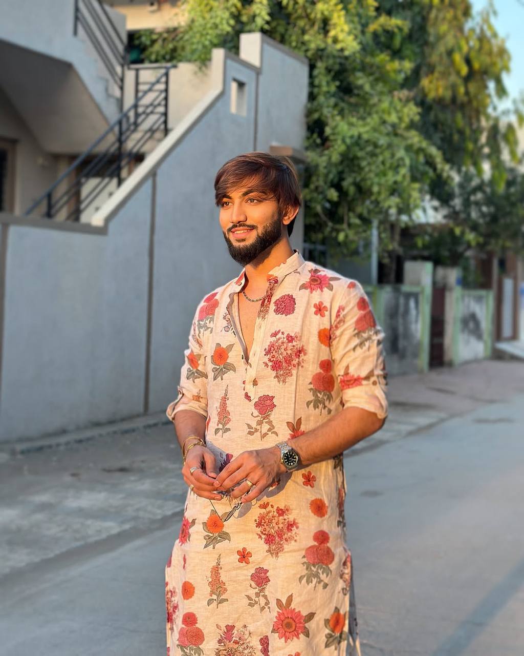 IVORY ROSE PRINTED KURTA PAJAMA SET FOR MEN'S