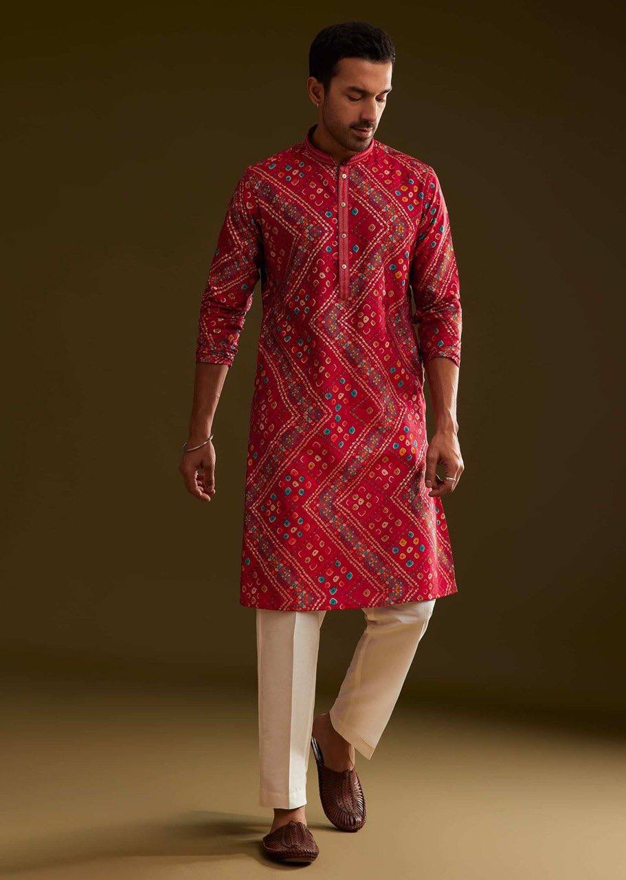 RED SILK BANDHANI PRINTED KURTA WITH PAJAMA