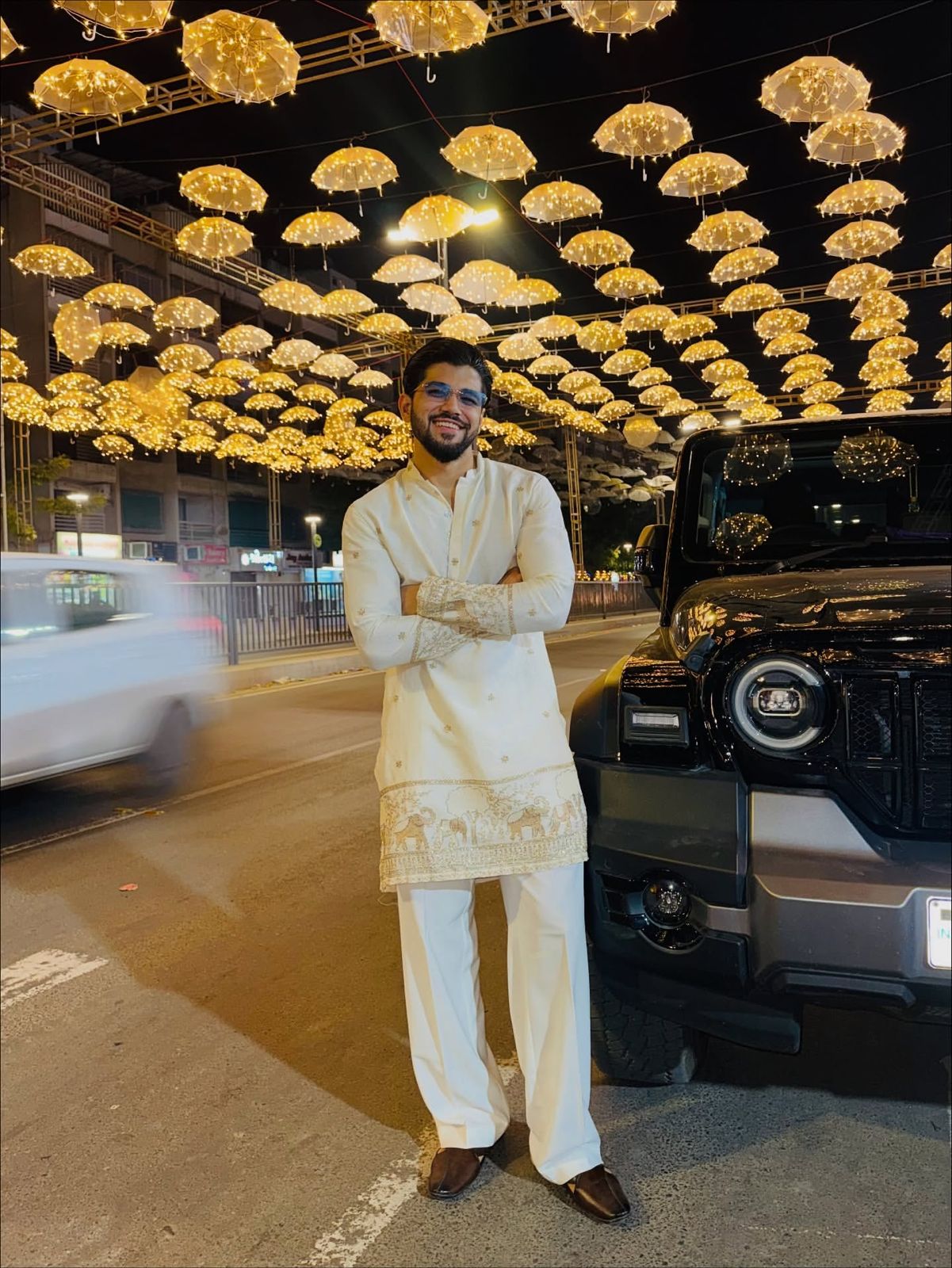 This WHITE ELEPHANT AND BUTTI EMBROIDERY WORK KURTA Pajama Is Created by KARMA KURTA ,This Hand-stitched Kurta Is Made of 100% Pure Malay Satin Fabric With Having embroidered work Over It. Our Attractive embroidery Add More Charm to Your Look, Wear This at Any Time Because the Fabric Is So Smooth to Skin That You Will Love It.